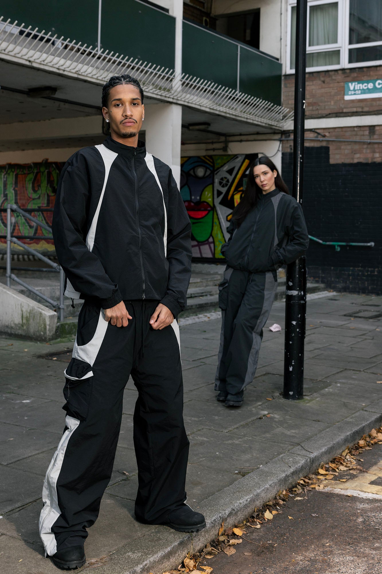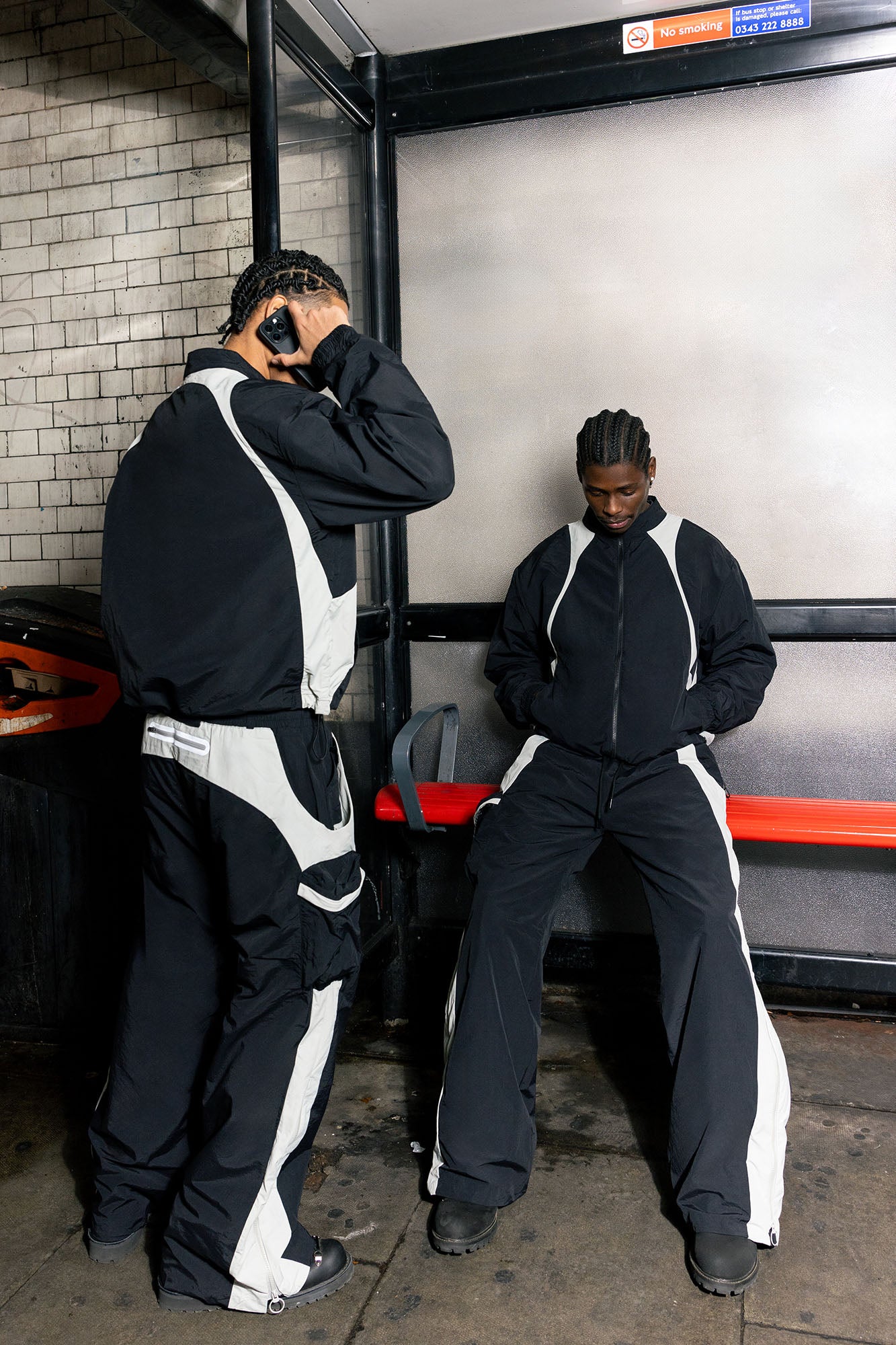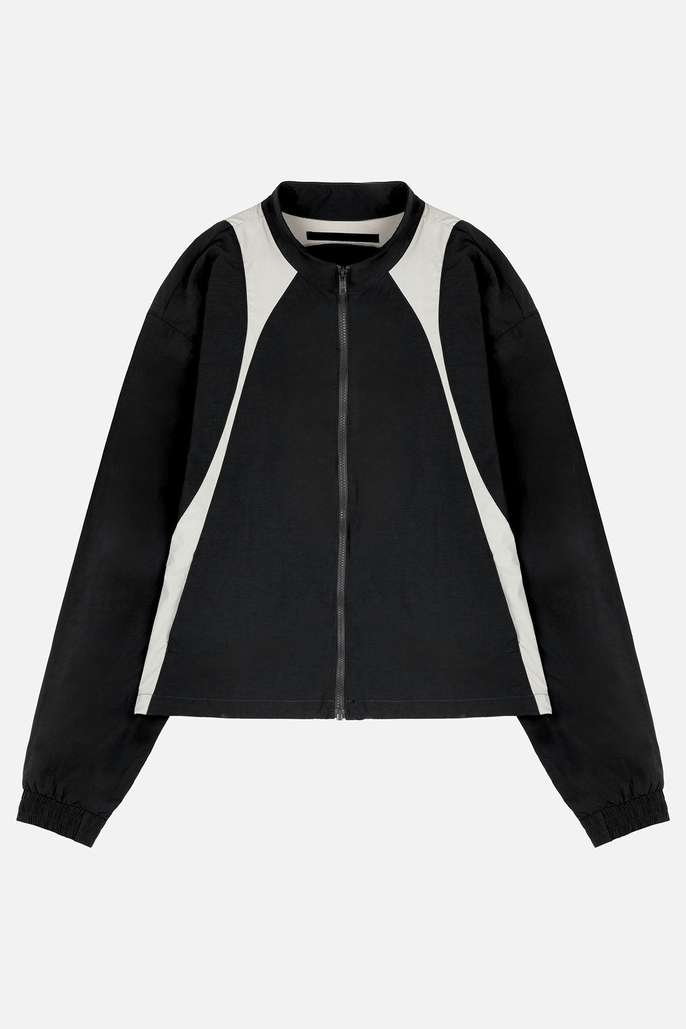 Crafted from cotton mixed nylon taffeta, the Studio Jacket features decorative lines on both side, hidden pockets at the front, and finished off with drawstrings at the hem.