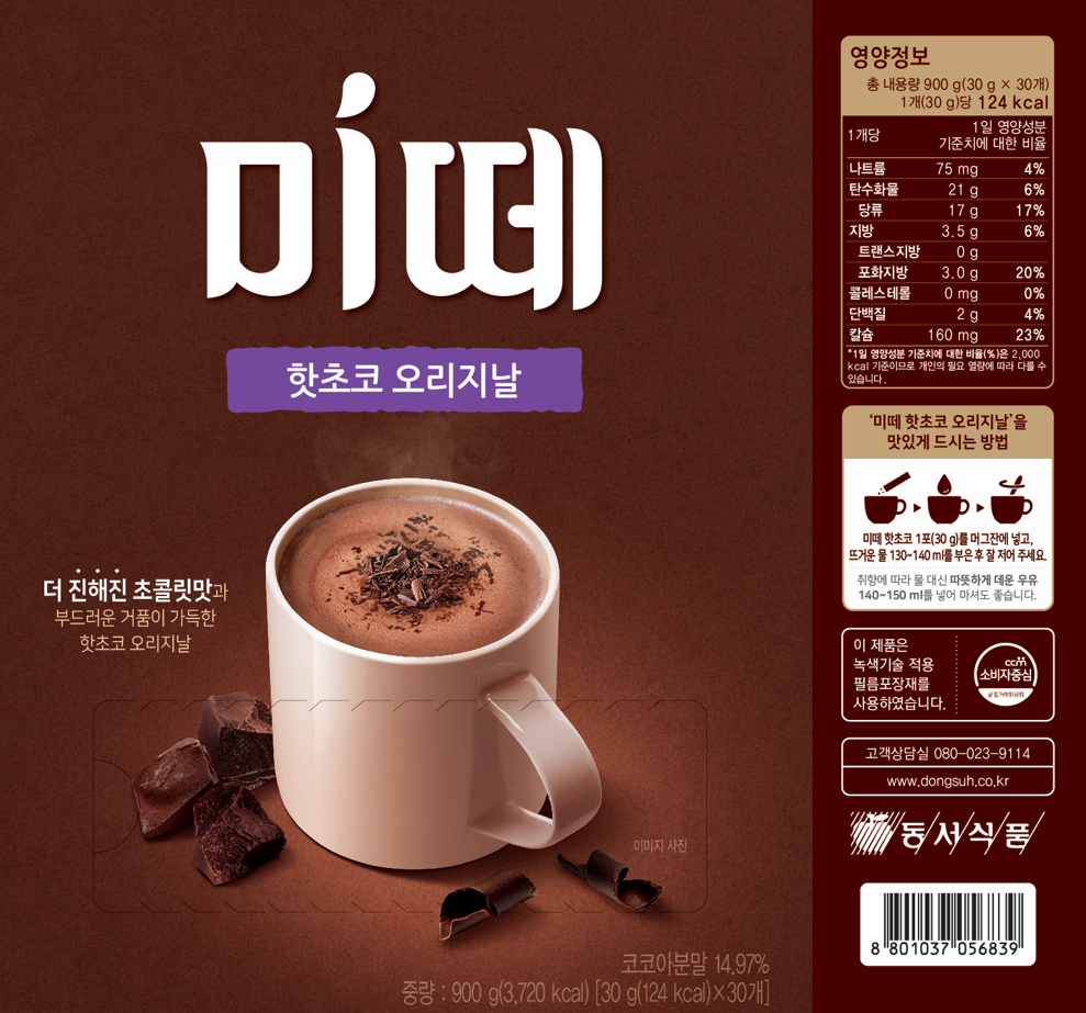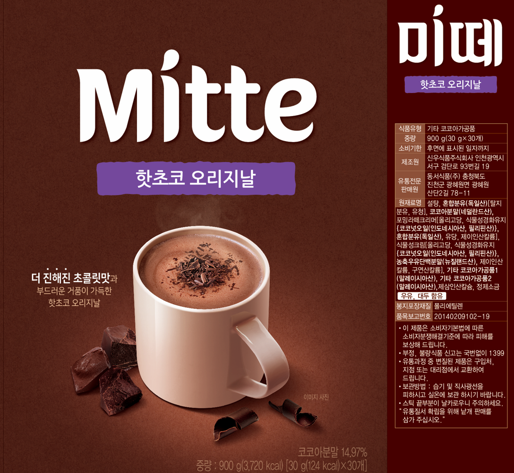 | 제품명 | 미떼 핫초코 오리지날 | 식품의 유형 | 컨텐츠 참조 |