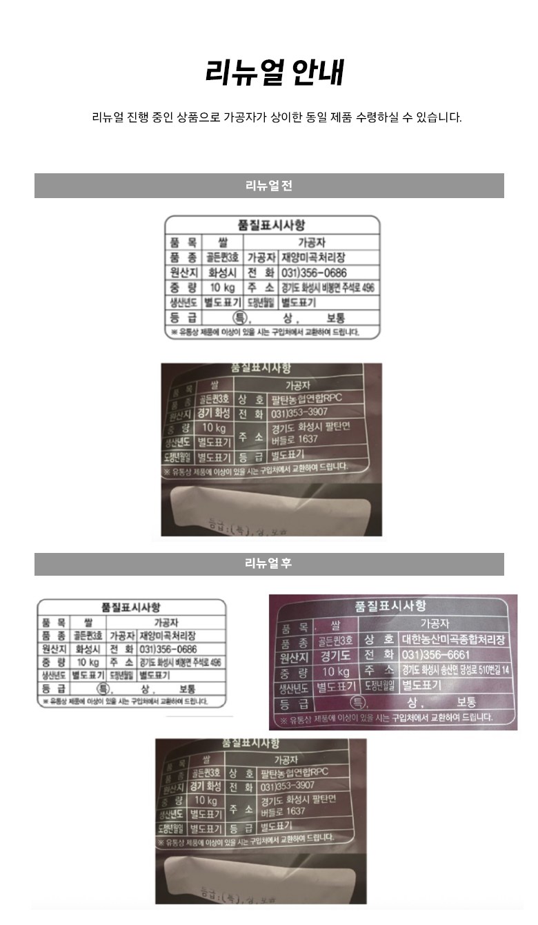 | 생산자(수입자) | 리뉴얼 전, 후: 컨텐츠 참조 | 원산지 | 컨텐츠 참조 |