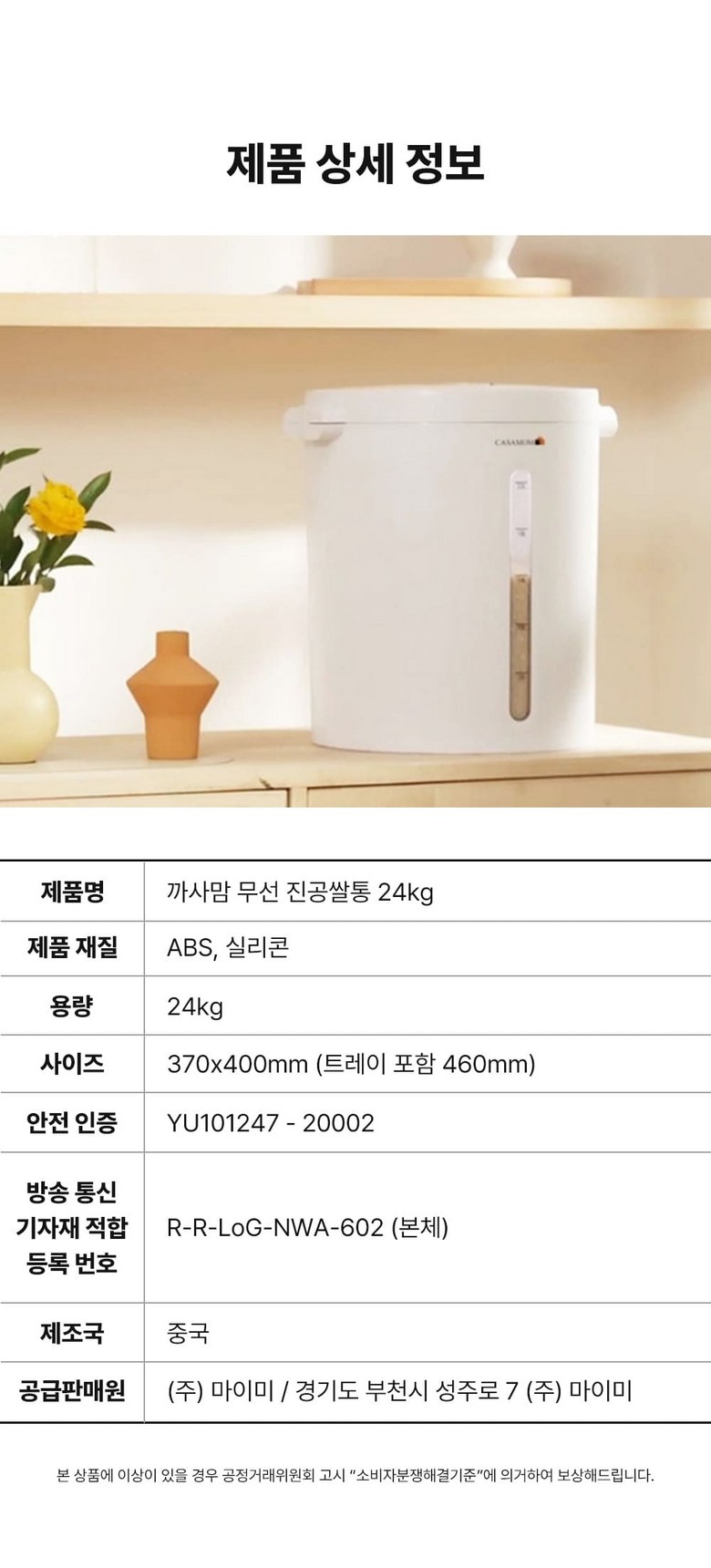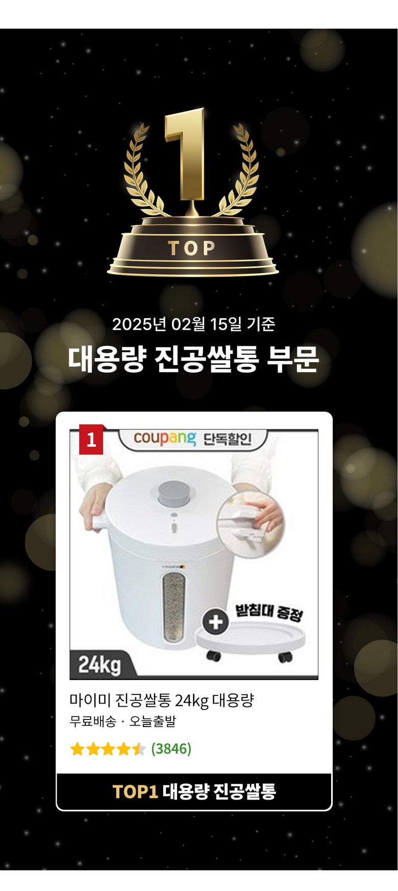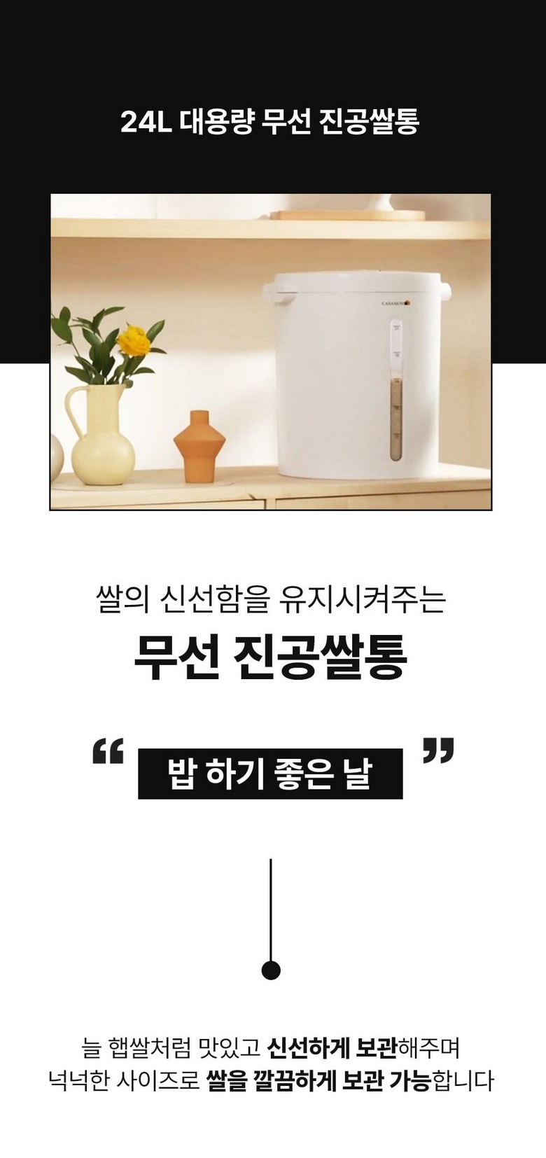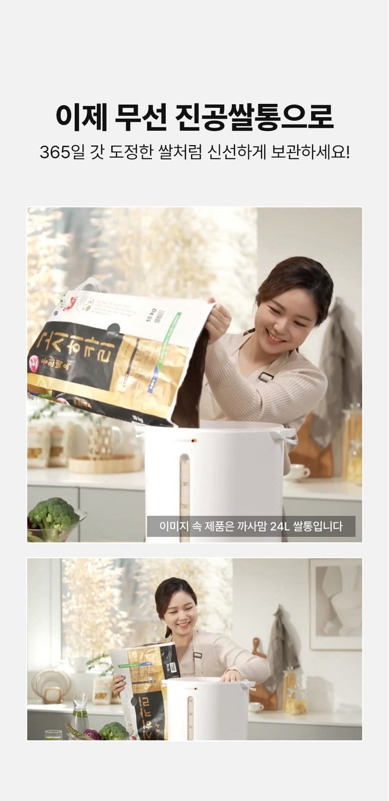 쿠팡공구 33차/ 마이미 진공쌀통[24kg대용량/유무선] 25년+특허기술(트레이+충전식+압축+진공)쌀벌레방지 밥맛보장 신선도유지 쌀통 USB충전 진공밀폐 쌀보관통 저소음 사료보관
