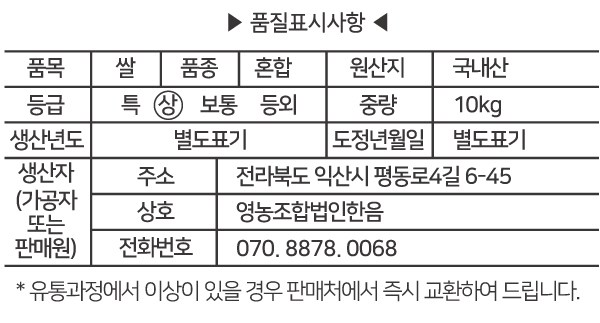 한음미가 2025년산 햅쌀 우리쌀 백미