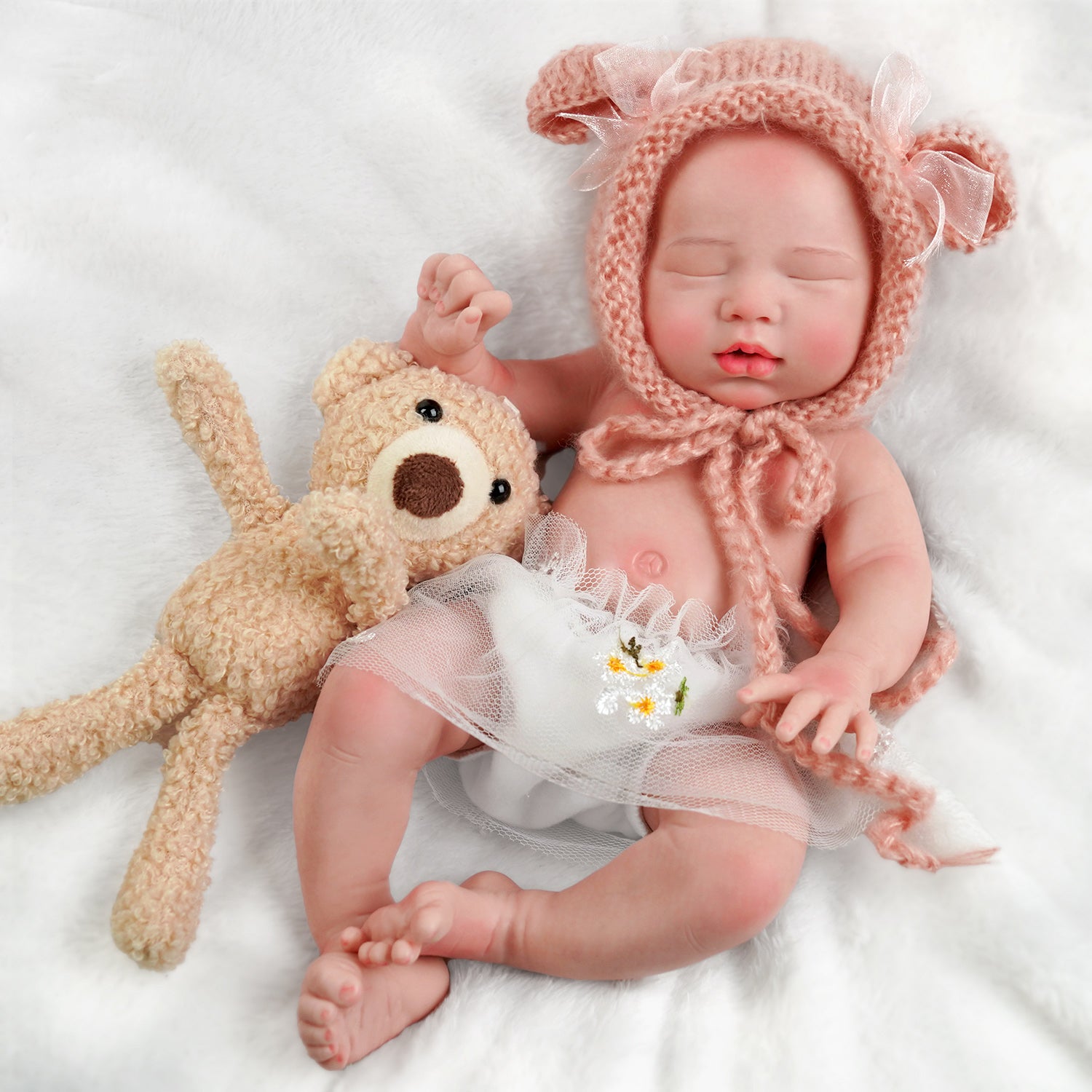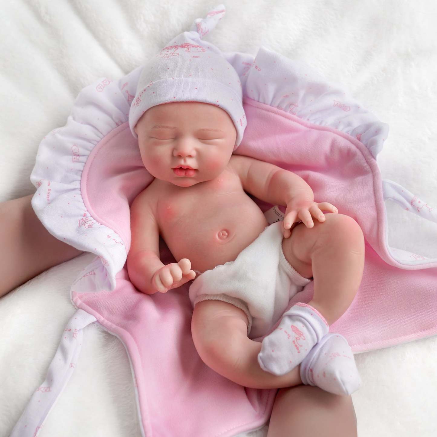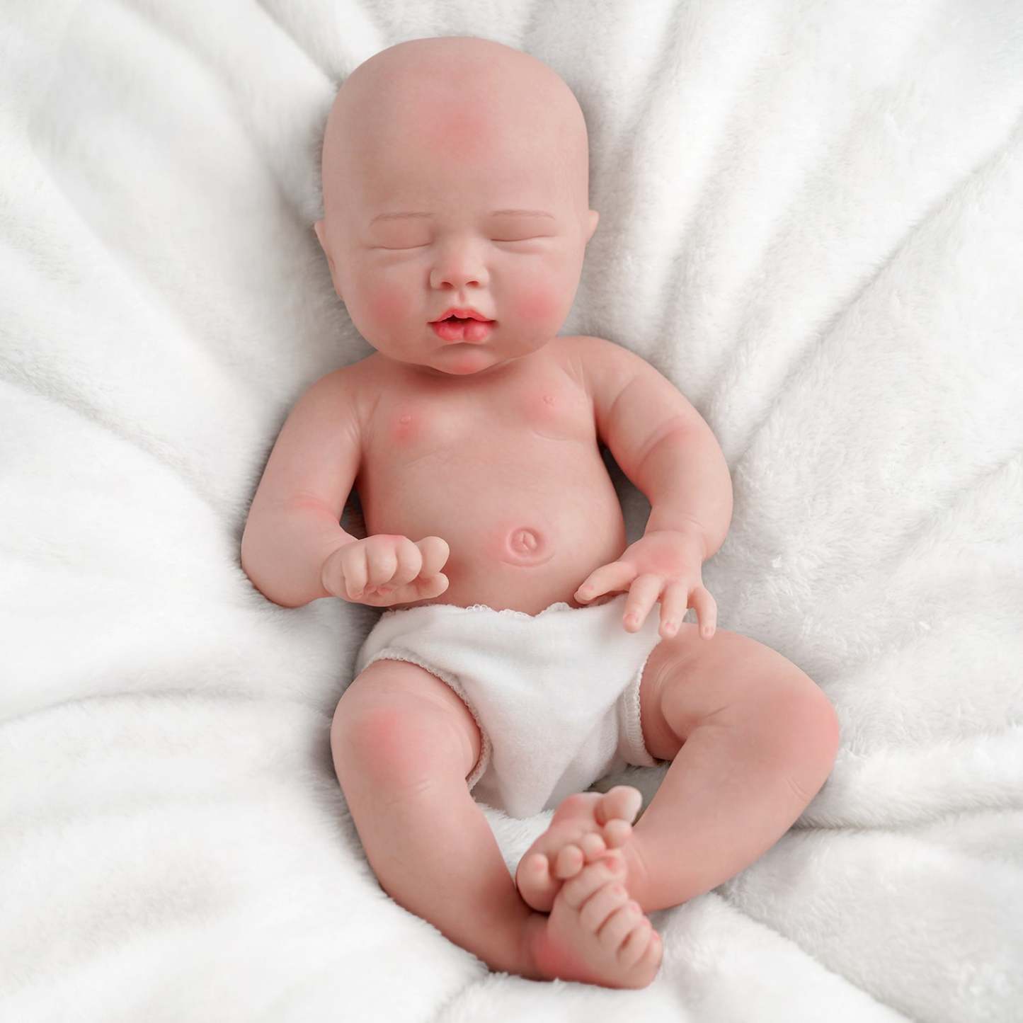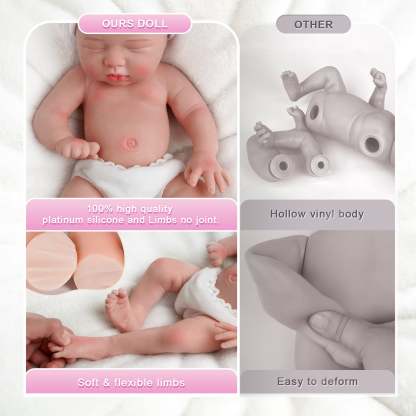 Everyone loves a fleshy mouth, rosy, plump cheeks, and a sleepy look, and this baby doll has it all from head to little toes! This sleepy realistic newborn doll is perfect for all kid collectors and reborn parents.