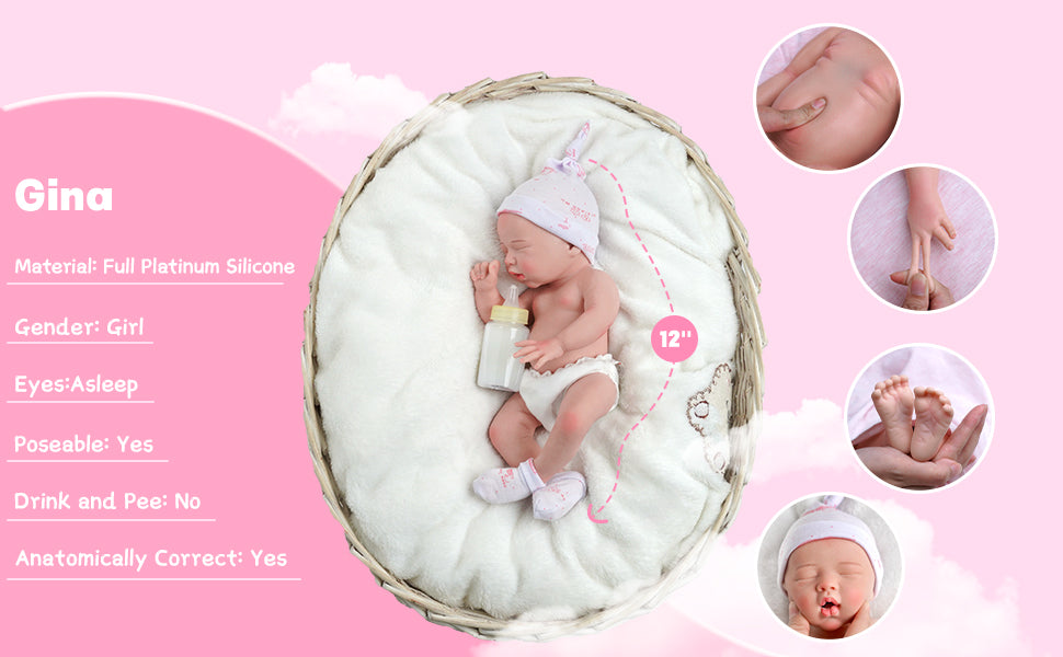 Babeside Gina 12" Realistic Silicone Sleeping Baby Newborn Girl Healing of the Heart