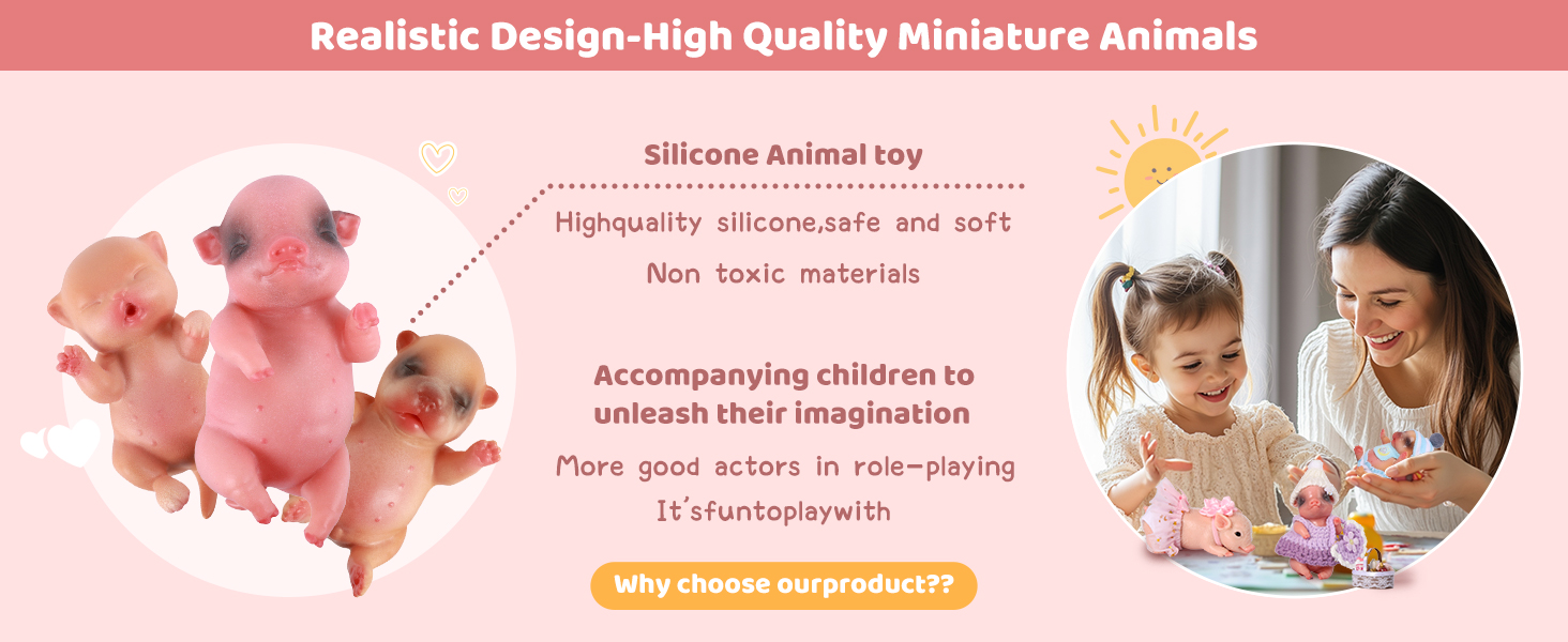 Babeside 5" Soft Chubby Lifelike Piggy Nora Toys Mini Stretchy Realistic Silicone Animal