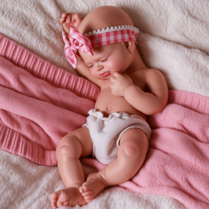 Everyone loves a fleshy mouth, rosy, plump cheeks, and a sleepy look, and this baby doll has it all from head to little toes! This sleepy realistic newborn doll is perfect for all kid collectors and reborn parents.
