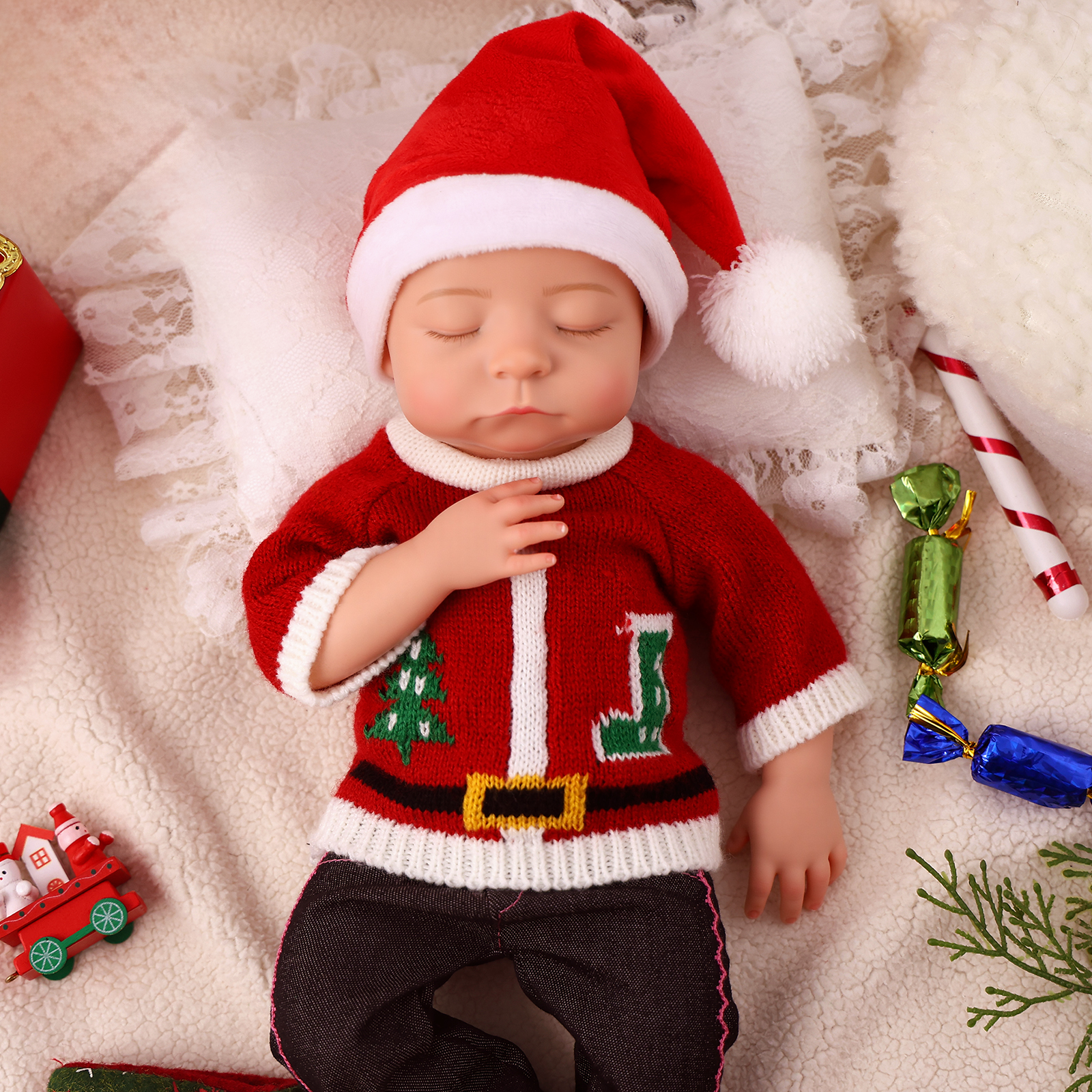 Babeside Christmas Noah 16" Realistic Silicone Sleeping Baby Little Infant Warming the Winter