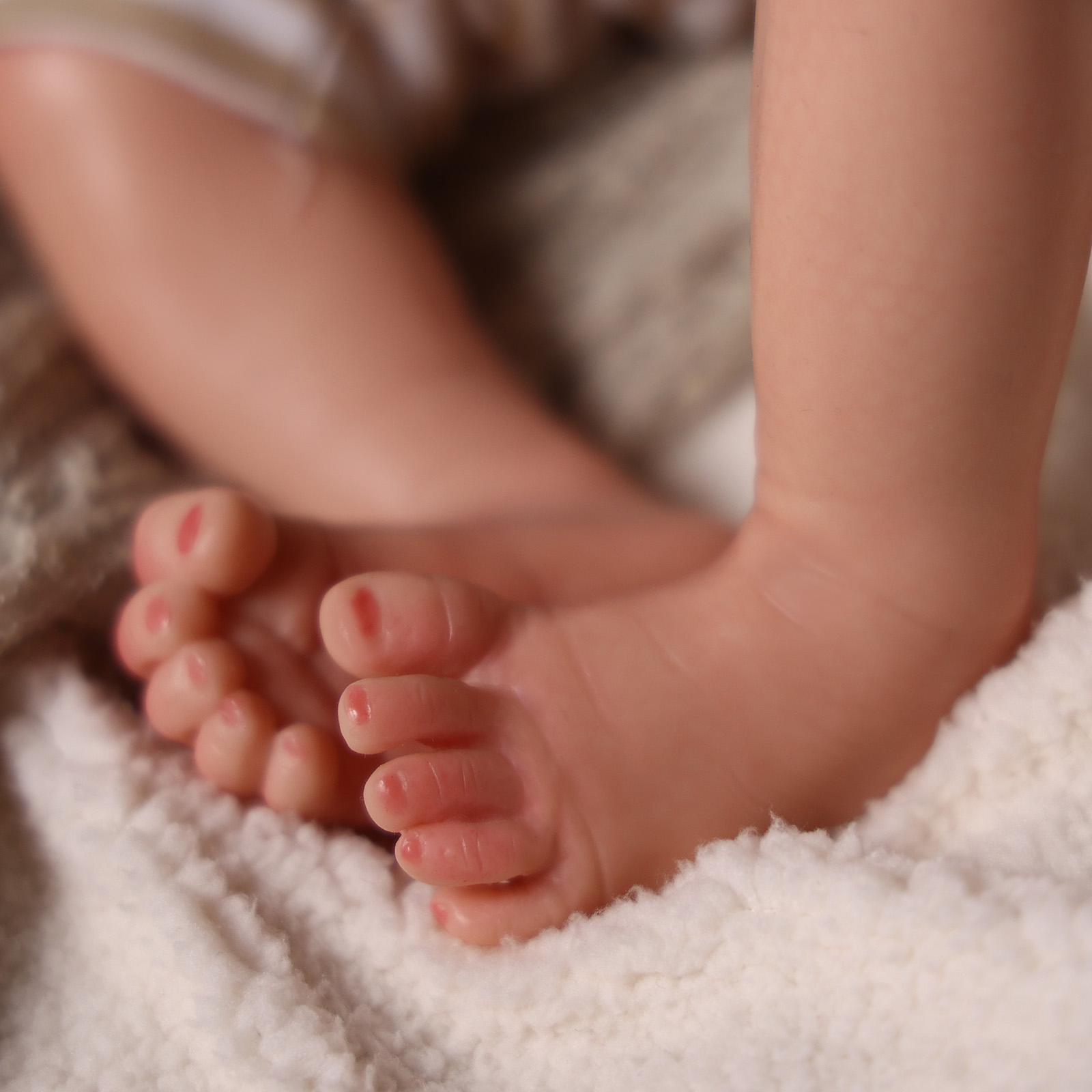 Everyone loves a fleshy mouth, rosy, plump cheeks, and a sleepy look, and this baby doll has it all from head to little toes! This sleepy realistic newborn doll is perfect for all kid collectors and reborn parents.