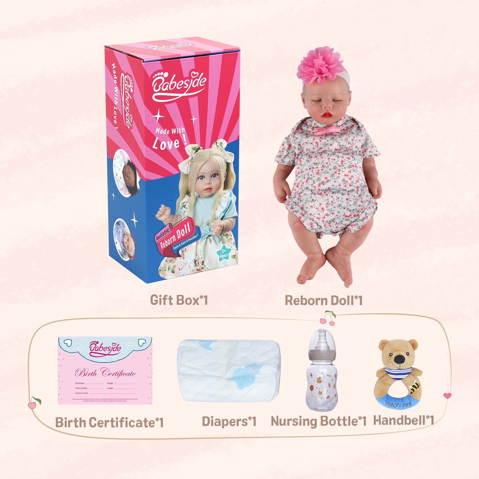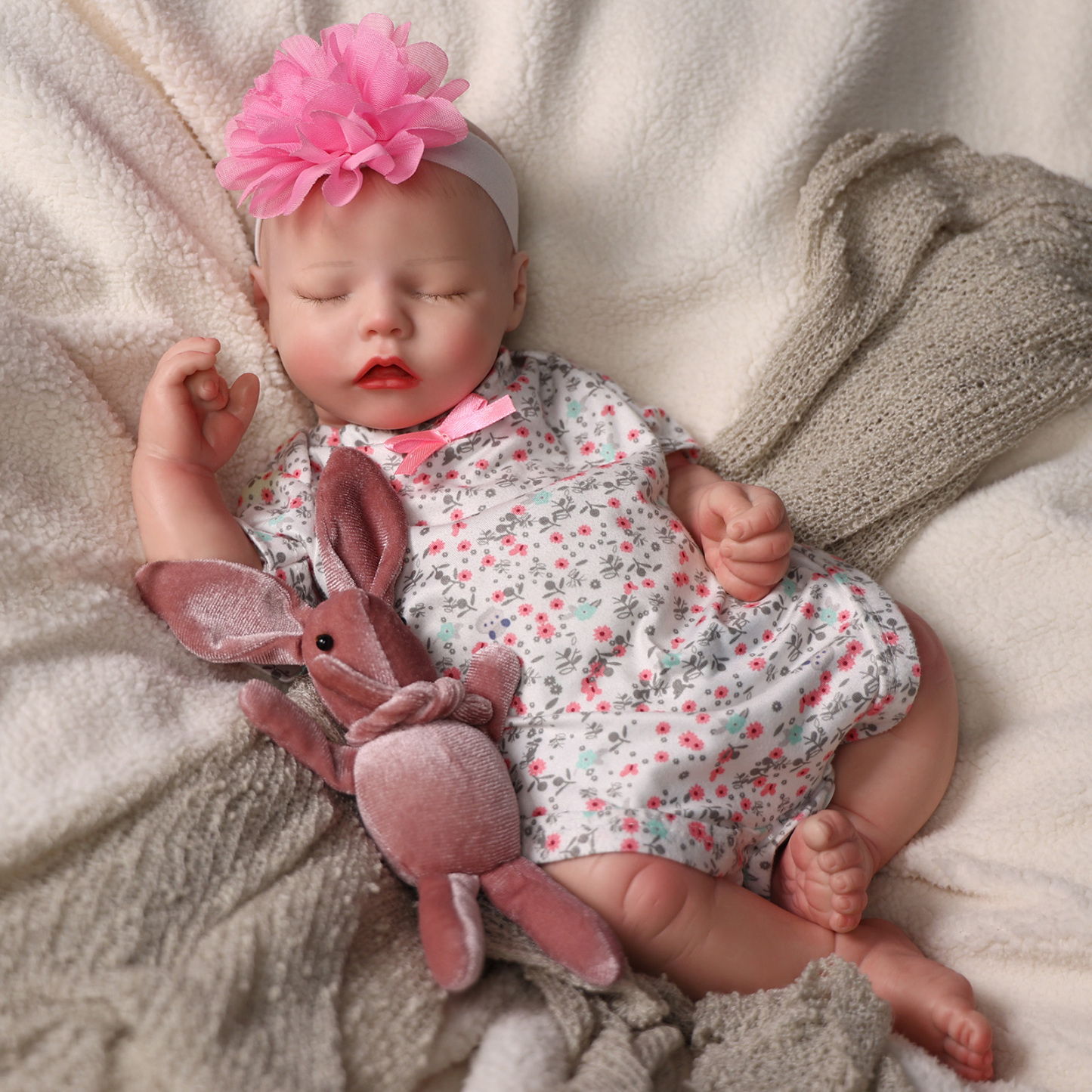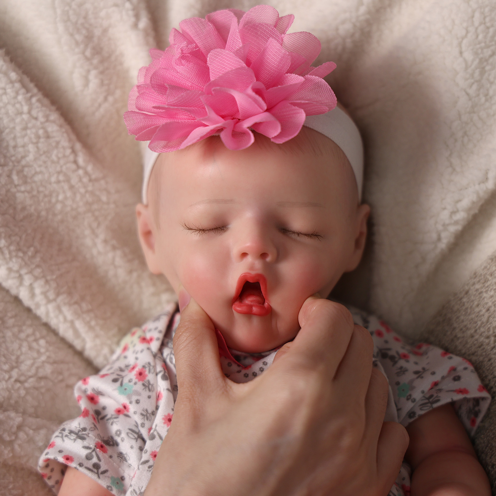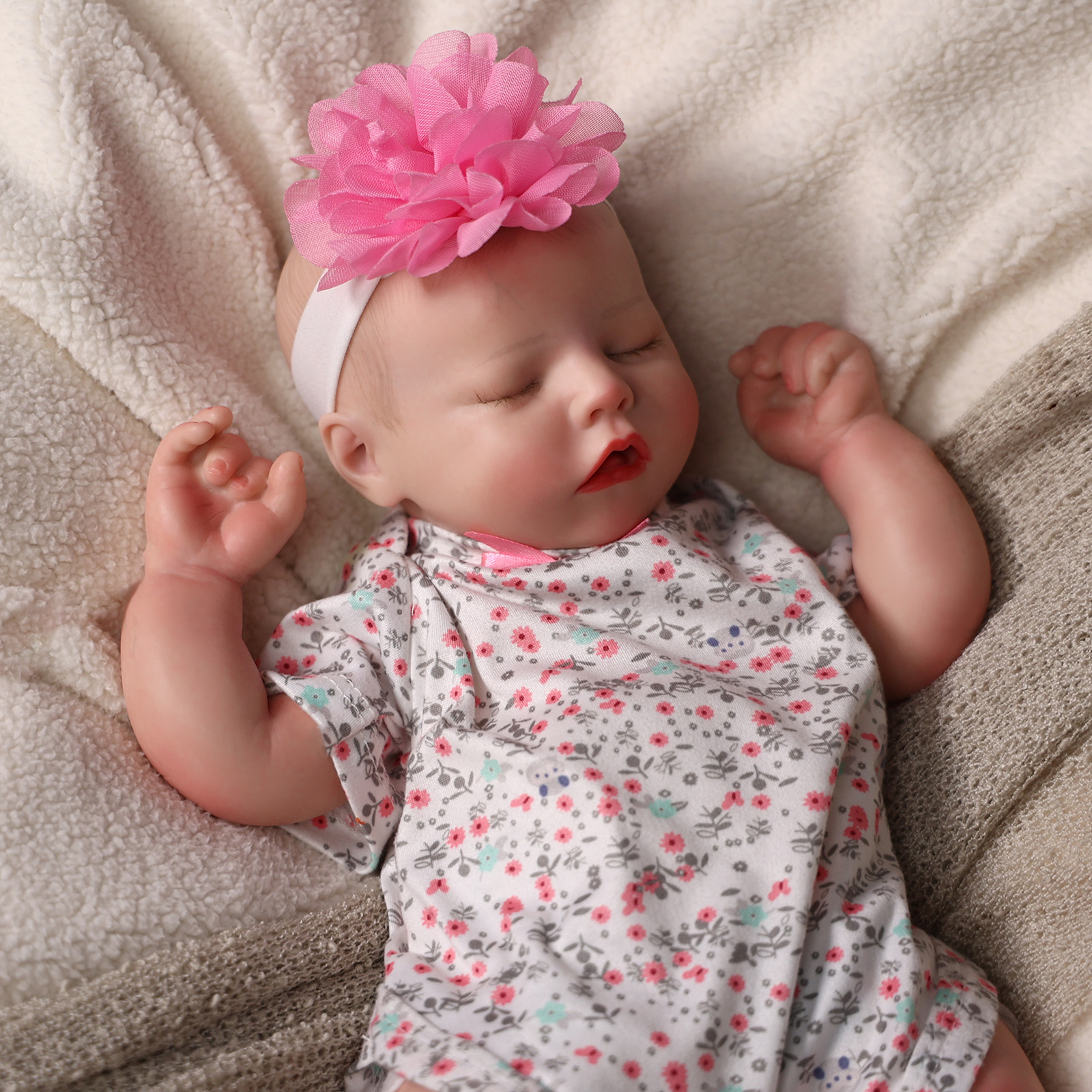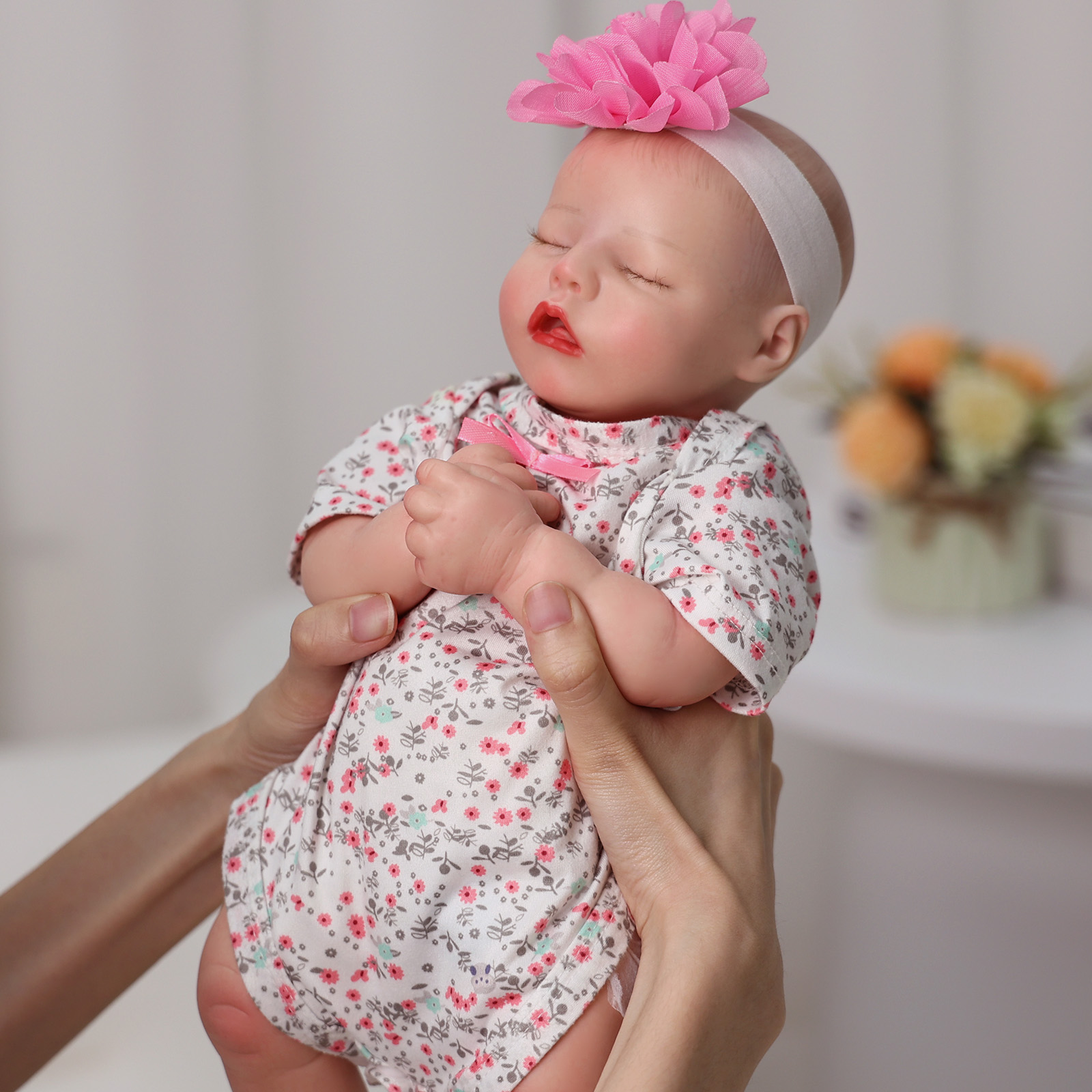 Everyone loves a fleshy mouth, rosy, plump cheeks, and a sleepy look, and this baby doll has it all from head to little toes! This sleepy realistic newborn doll is perfect for all kid collectors and reborn parents.