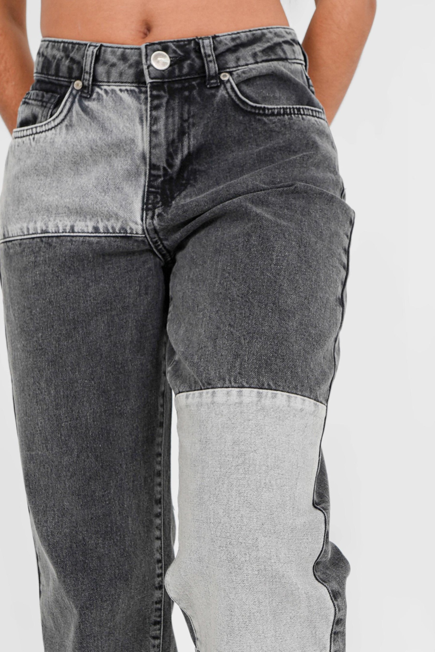 Limited Edition jeans for women. Patchwork fabric on the front. Front and back pockets, zipped fastening and buttoned closure.