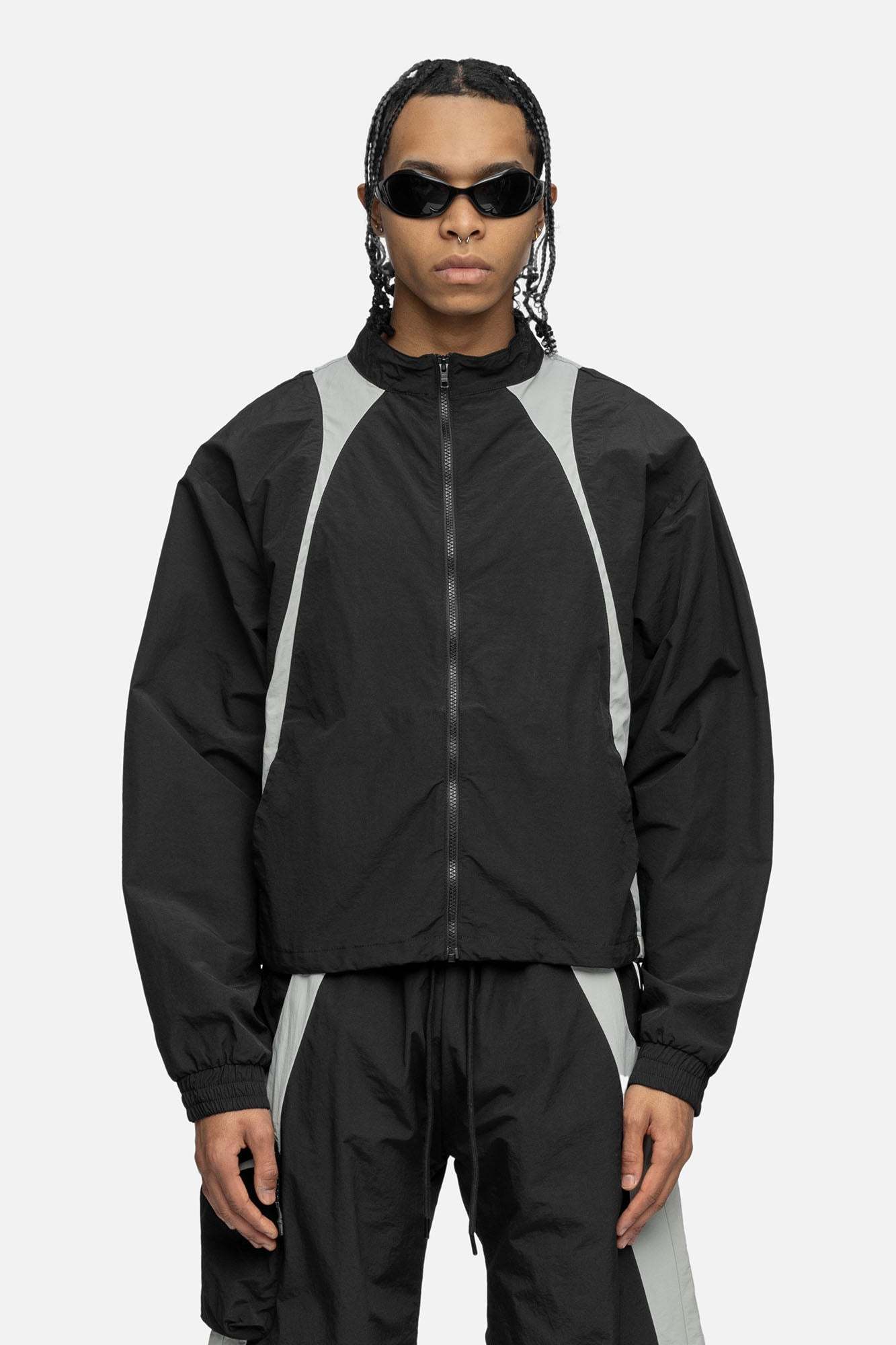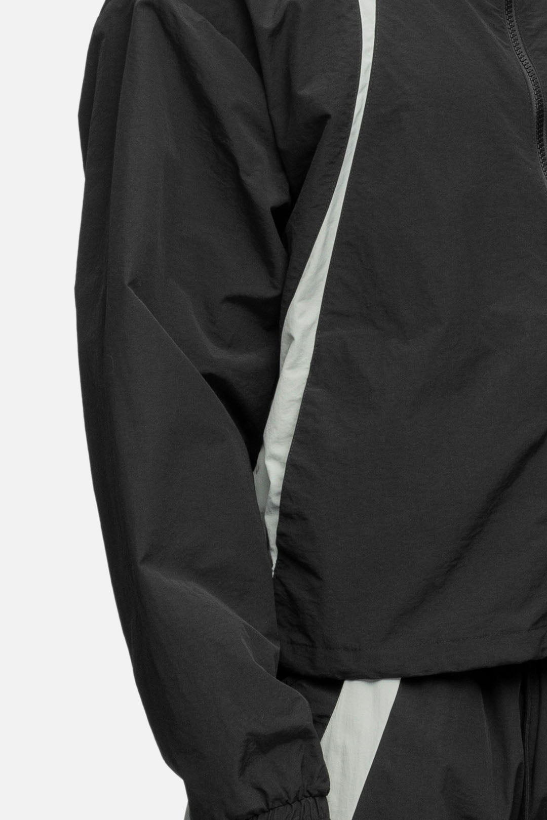 Crafted from cotton mixed nylon taffeta, the Studio Jacket features decorative lines on both side, hidden pockets at the front, and finished off with drawstrings at the hem.